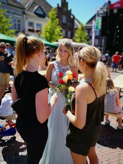 Für einen erfolgreichen Festivalauftritt sorgte zudem das Straelener Blumenmädchen Diana Maes, die beim Verkauf der Blumenhaarkränze tatkräftig mitwirkte. Die 22-Jährige verteilte im Auftrag der Stadt Straelen nicht nur schöne Blumen an die Besucher, sondern sorgte mit ihrer Präsenz an der Flower-Bar auch für ordentlich Umsatz.