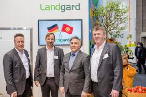 Und noch einen weiteren wichtigen Gast begrüßte Landgard am ersten Messetag: Im Beisein des Botschafters der Kirgisischen Republik, Erines Otorbaev, wurde auf der Fruit Logistica auch ein Projekt zum Ausbau der Bio-Produktion in Kirgisistan präsentiert. Dort wurden 1.600 Hektar Anbaufläche auf ökologischen Landbau umgestellt und erfolgreich erste Anbauversuche mit Bio-Kürbissen unternommen. Kirgisistan bietet Landgard vielfältige Möglichkeiten, samenfeste und alte Sorten sowie neue Obst- und Gemüsevarianten, die es in Europa noch nicht gibt, biologisch anzubauen – und das aufgrund der günstigen klimatischen Bedingungen deutlich vor der Erntezeit in Europa. Landgard wird die Erzeuger in Kirgisistan daher weiterhin beim Ausbau und der Beibehaltung ihrer ökologischen Landwirtschaft unterstützen. Das Sortiment umfasst unter anderem Melonen, Aprikosen, Kirschen, Trauben, Beerenobst, Rettich, Kürbis, Heilkräuter, Mais, Soja, Bohnen und Trockenfrüchte.