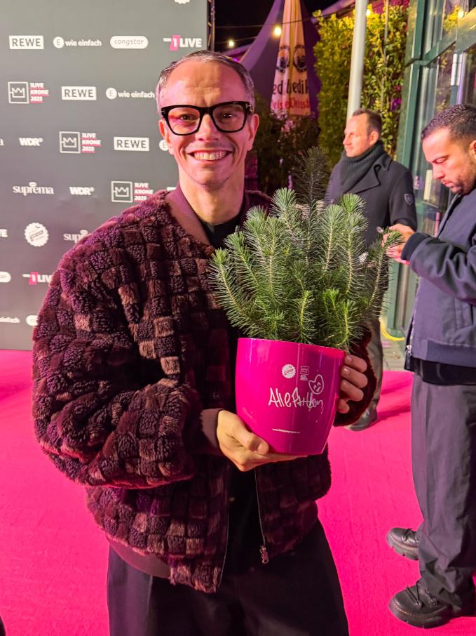 Direkt beim Eintreffen der Gäste wurde es interaktiv: In kurzen Interviews durften die Stars und Nominierten ihre Lieblingspflanze aus drei Vorschlägen auswählen – eine Aktion, die für viele sympathische Geschichten und spontane Gespräche sorgte. Zusätzlich signierten die prominenten Gäste exklusive 1LIVE Krone x 1000 gute Gründe-Pflanztöpfe, die im Anschluss über die Community der Initiative „1000 gute Gründe“ verlost werden. Ein echter Hingucker und unvergessliches Souvenir – auch für die Krone-Gäste, denn sie konnten am Ende des Abends eine der Pflanzen gleich mit nach Hause nehmen.